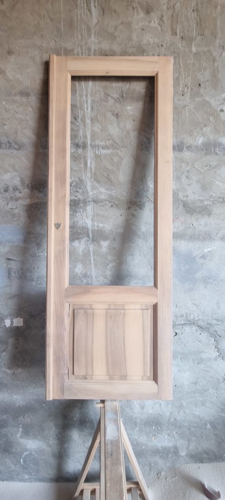 Aérogommage d’une magnifique porte en chêne avec pose de vernis coloré